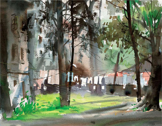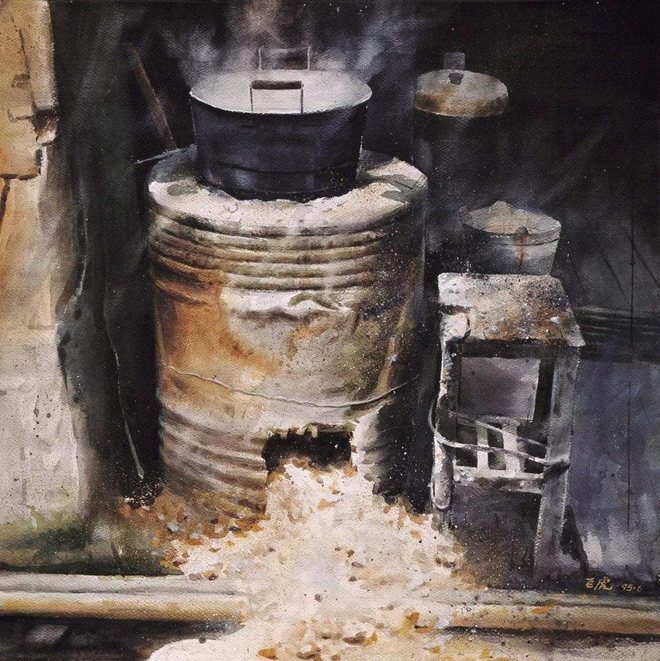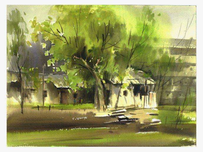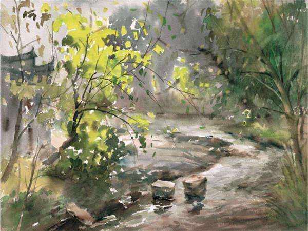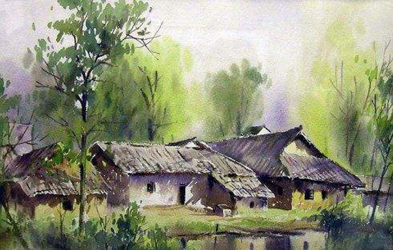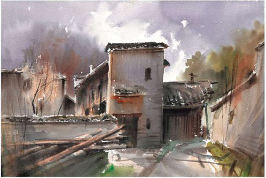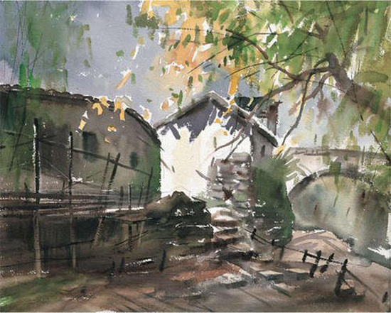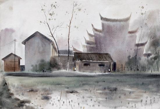 1995年,水彩画《路边小屋》入选’95杭州中国水彩画大展;