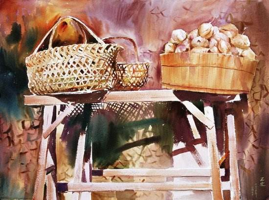 1992年,作品《砖墙上的菜篮》荣获第二届全国水彩画·粉画展览优秀作品奖;