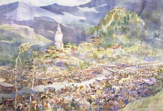 水彩画《黄河大集》(2008年作)获纪念中国改革开放三十周年全国美术作品展览优秀奖。
