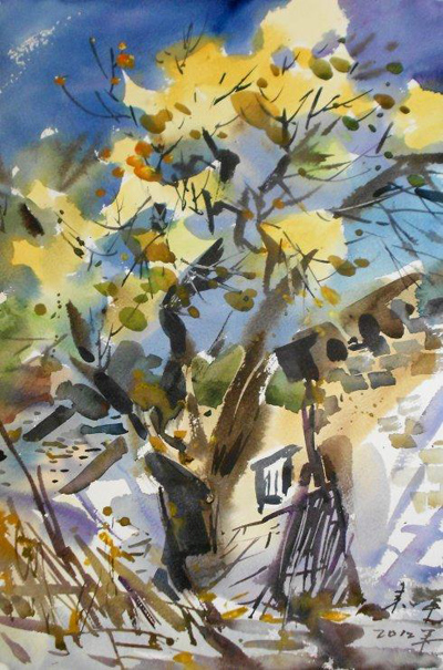水彩画《春寒二月》(2007年作)获山西省第十三届水彩粉画展览一等奖。