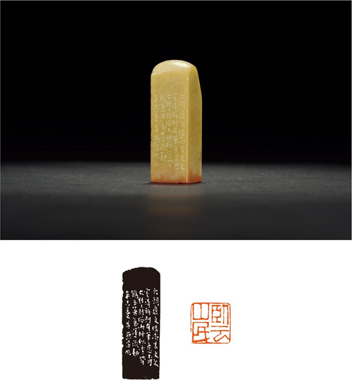张燕昌(1738—1814),字文鱼,号芑堂,又号金粟山人,清浙江海盐武原镇人。生乾隆三年,卒于嘉庆十九年,享年七十七岁。乾隆四十三年(一七七七)优贡,嘉庆元年(一七九六)举孝廉方正。擅篆、隶、飞白、行、楷书,精金石篆刻、勒石,工画兰竹,兼善山水、人物、花卉,亦精竹木雕刻,皆攸然越俗,别有意趣。勤奋好学,为浙派创始人丁敬高弟(高弟意为高足、高徒,是丁敬入门弟子)。初及门时,囊负南瓜二枚为贽,各重十馀斤。敬欣然受之,为烹瓜具饭焉。大胆创新,试以飞白体入印,被誉为浙派篆刻的“负弩前驱”。海盐文人治印之风,变始自张氏。亦曾师事嘉兴张庚,又在杭州与梁同书、翁方纲探讨考释,终日不倦,多所创见。