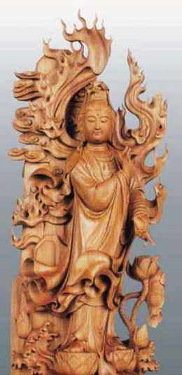 2000年《檀香木立荷花观音》作品被收藏于福建省工艺美术珍品馆;