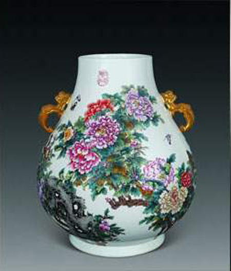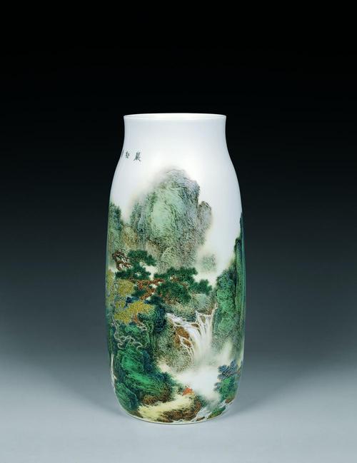 1984年其陶瓷艺术作品24英寸开光山水灯笼瓶获全国工艺美术"百花奖"银杯奖。