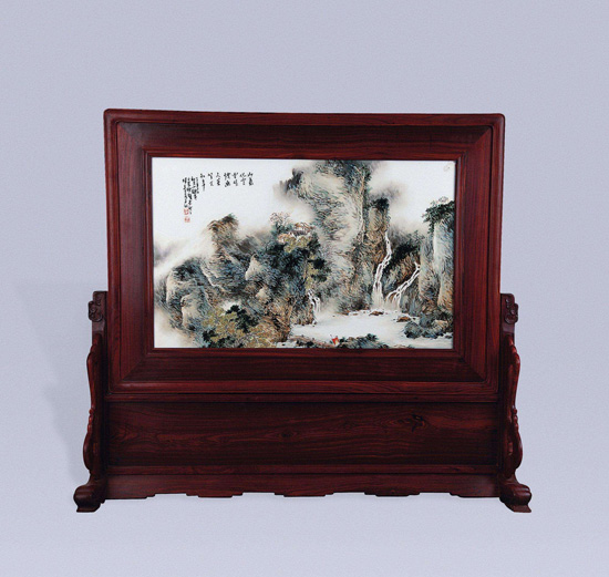 1991年青花桂盘《林壑鸣泉图》获省工艺美术评比一等奖并被广东工艺美术馆收藏。