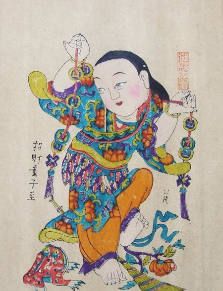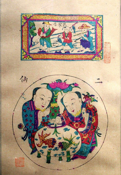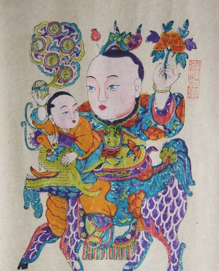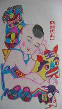 木版年画代表作:《风筝都之春》、《杨家埠民艺图志》和再现中国古代农民一年四季的劳作、游艺、节庆礼仪活动的年画长卷《农家乐》。