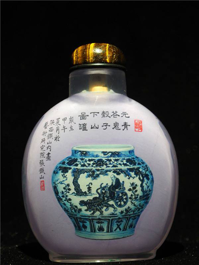 张铁山,1963年出生。中国工艺美术大师,陕西省政协委员、西安市政协委员,秦派内画艺术创始人。1979年拜中国工艺美术大师王习三先生学习内画艺术。1988年于西安创办张铁山内画艺术研究室,2002年创办陕西铁山内画艺术研究院。创立了以润、透、精、雅为特点的“秦派”内画艺术,开创了陕西内画艺术之先河。