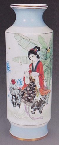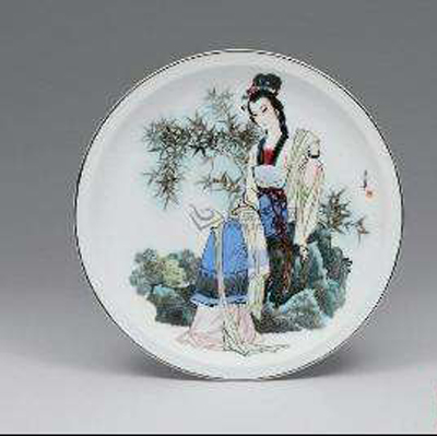 粉彩《仕女弹琴》瓷盘,刊登于香港《收藏天地》,并作为《景德镇陶瓷》1990年第1期封面;