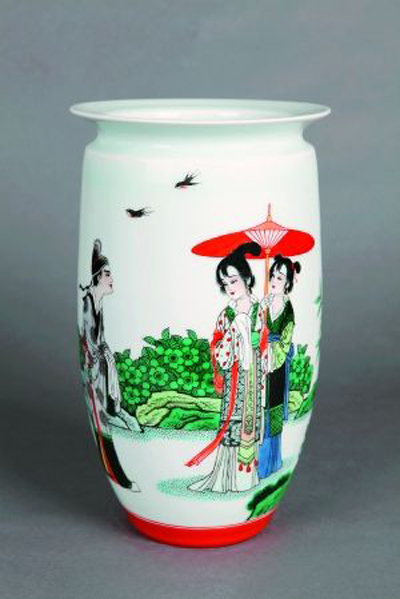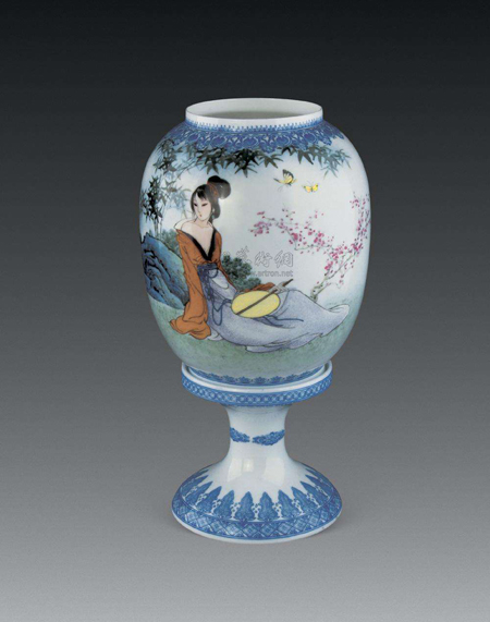1992年,他的《四美图》四条屏瓷板画,在新加坡被高价购藏;