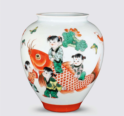 红绿彩《乐在其中》80件罐,获景德镇市第四届陶瓷美术"百花奖"二等奖;