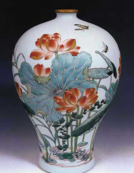 日本恩巴"中国近代美术馆"收藏了《红绿彩鱼尾瓶》等3件作品;