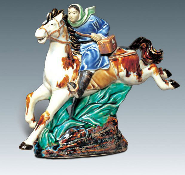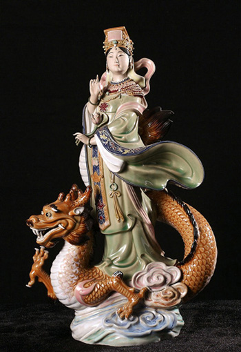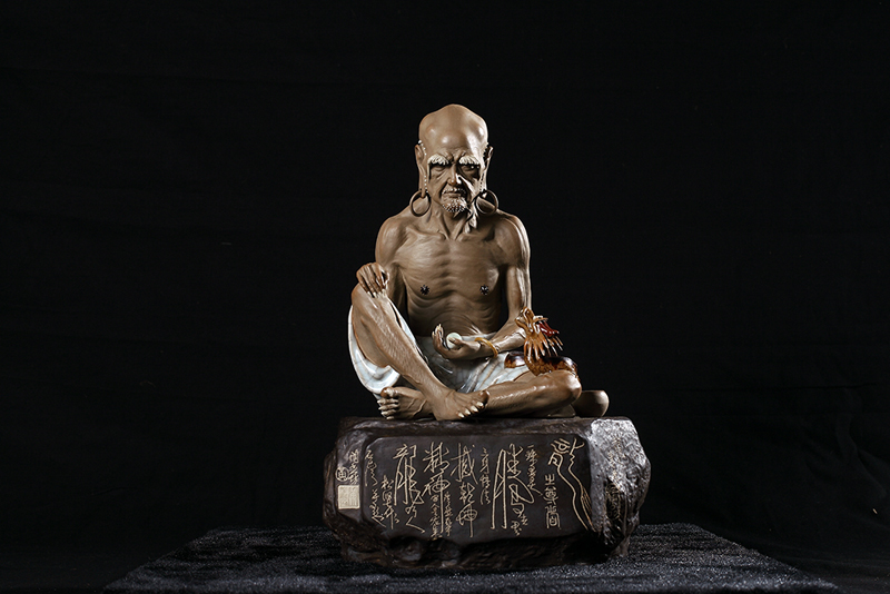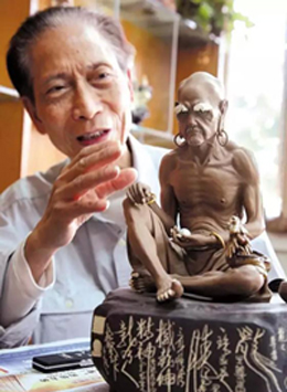 黄松坚,1940年生于广东东莞,1992年被评为高级工艺美术师,1996年被评为中国工艺美木大师。1959年加入石湾美术陶瓷厂,进石湾美术陶瓷学校学习。1961年毕业后一直从事陶塑人物创作。他早年在佛山祖庙、广州陈家祠等地临摹晚清民国时期石湾制作的“瓦脊公仔”,吸取其“贴塑”手法的精华,结合时代要求锐意创新,努力寻找自己的艺术语言,独辟蹊径。1962年以“贴塑”手法创作的《吹笛仙女》,雍容高雅、工细精巧,令人耳目一新,1963年赴香港展出获得好评,1997年入选香港“第二届亚州艺术节”,并为香港博物馆收藏。其后他以“贴塑”创作的《吹箫引凤》、《春夏秋冬》、《妈祖》等作品在社会上都赢得了“神工妙塑”的高度评价,逐步形成了贴塑仕女玲珑精妙、优雅灵秀的艺术风格,被誉为“石湾贴塑陶艺的拓新者”,带动了新贴塑陶艺在石湾的创作热潮,开创当今石湾陶艺一大流派,代表作《春夏秋冬》等堪称石湾新贴塑陶艺里程碑式的经典之作。收到显著而深远的社会和经济效益。