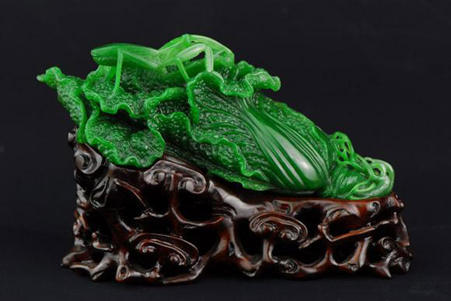 翡翠《螳螂白菜》获杭州西湖第五届工艺美术精品博览会特等奖。