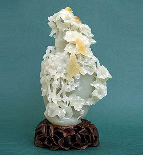 白玉《菊花链瓶》获中国玉石雕刻精品博览会“百花玉缘杯”金奖。