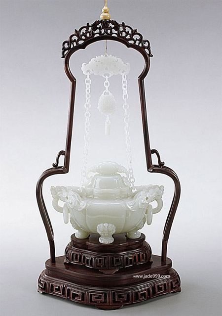 白玉《链熏炉》获首届宝玉石博览会三等奖。