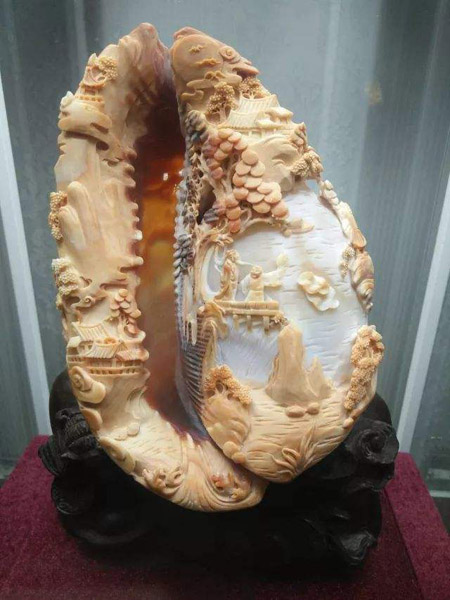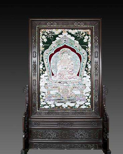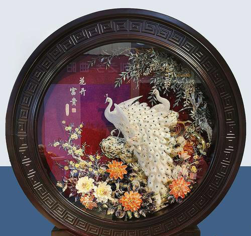 金阿山 ,男,1944年12月生于山东省烟台市,1964年拜师学习贝雕技艺,现任辽宁省大连旅游工艺品厂总工艺师、高级工艺美术师。