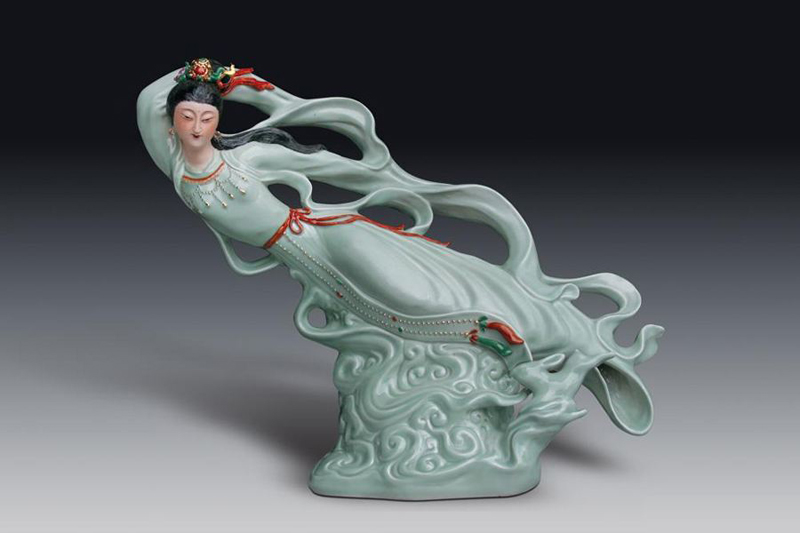 1979年创作大型瓷雕“牡丹仙子”参加香港的名作展。