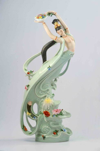 1980年创作31"‘飞天天女散花’获景德镇瓷美术百花一等奖。