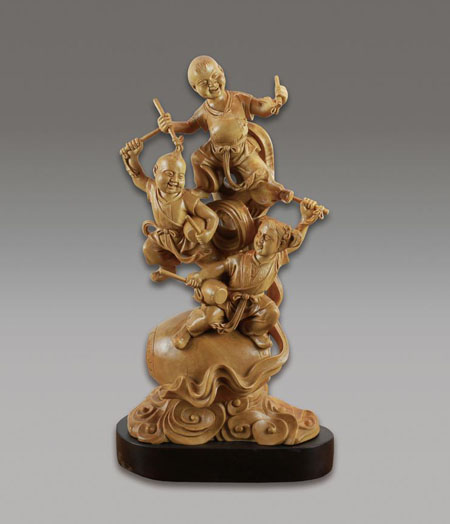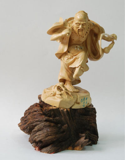 虞金顺 男,1949年出生于浙江省温州市乐清县,高级工艺美术师,第三届中国工艺美术大师(黄杨木雕),首届浙江省优秀民间文艺人才,首届浙江省工艺美术大师。其父亲是著名的黄杨木雕艺术家虞明华,其母亲也是木雕艺人。
