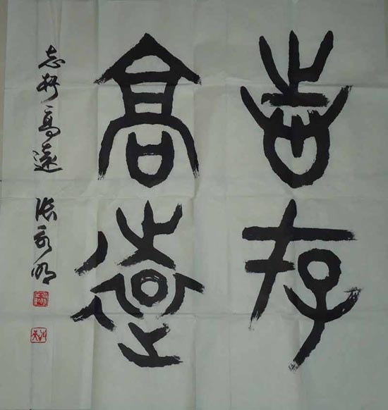 近几年来,张永明潜心著述,先后出版了《篆书与篆书笔法》、《篆书技法》、《篆书章法》、《秦篆书刻石四种解析字帖》、《西周金文五种解析字帖》、《书法创作大典》(篆书卷)等著作,与人合编的教材、字帖多达十多种。并担纲大型书法工具书《书法字海》常务副主编,是一名深受大家喜爱的学者型书法家。眼下,张永明仍在潜心研究古文字和篆书书艺。中央电视台屡屡把他作为特邀嘉宾做节目,看重的就是他对学术严肃认真的态度和谦逊直爽的人格魅力。这些年他先后为公益事业、慈善事业、希望工程无偿捐赠书法作品数百幅。特别是身边人有困难总愿意找他,对此他会毫不犹豫地伸出援助之手。与张永明接触久了,就会在心中留下一种深刻的印象:其人德艺双馨、其字神形兼美。
